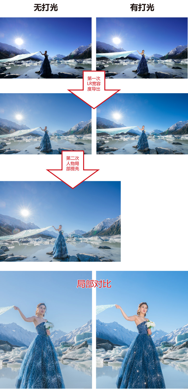 下面用真实实例来测试通过宽容度拉回,是否需要灯光(左边为无打光,右边为打了灯光)