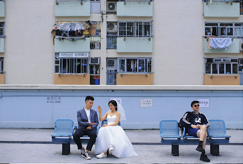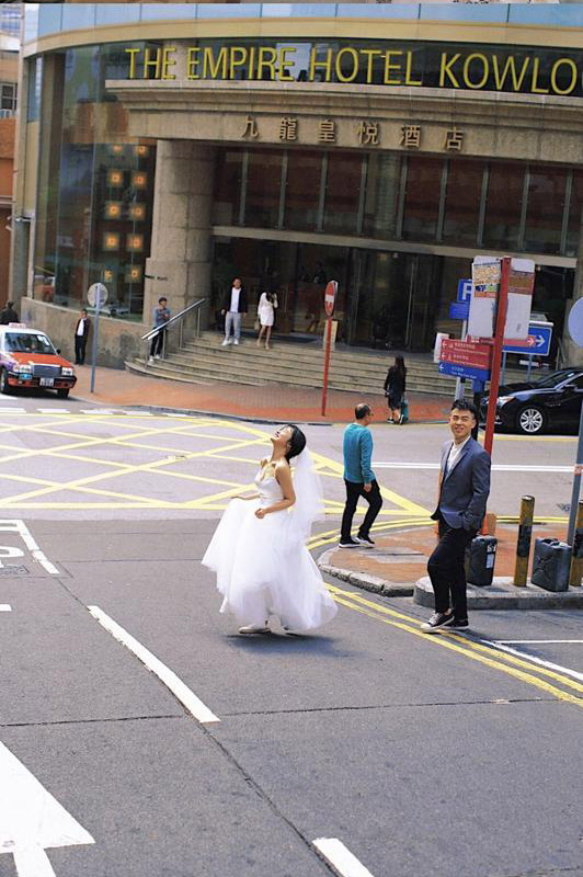第二,看自己的片子都会盯住缺点,如头纱没摆好,脸上的痘痘没修掉,颈纹没修掉,甚至背景的行人都要修得干干净净;