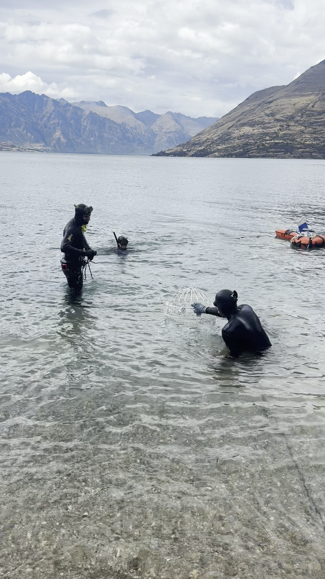 The next day blew my mind. No dramatic movie-style rescue scene — while we stood anxiously on shore, her team of three dove in, made a few passes, and in just 15 minutes the birdcage was back on land. They said it had slid to about 20 meters deep (farther than I guessed), judging by the direction of the roll. Their calm, matter-of-fact manner made it look as casual as picking up a KFC order.